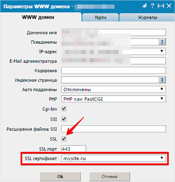 Как только SSL будет установлен, мы должны перейти в раздел “WWW домен” и поставить там вот такую галочку.
