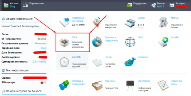Прямо в списке инструментов мы можем заметить пункт CMS – Установка систем управления. Он-то нам и нужен.
