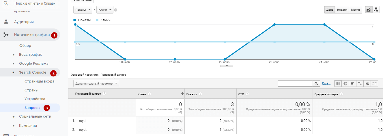 Собираем запросы, по которым показывался сайт или по которым были переходы