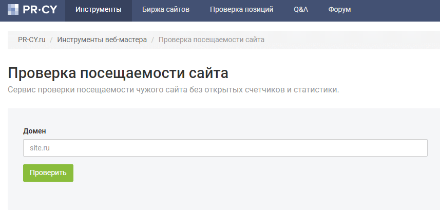 У Pr-cy работает свой инструмент для определения трафика конкурентов. Достаточно просто вбить адрес в поисковую строку, и через минуту нужные данные будут перед вами.