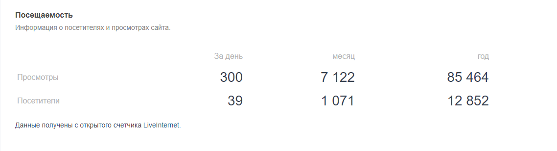 В счетчике обычно указывается количество просмотров за сутки, неделю, последние 30 дней. В некоторых счётчиках также можно увидеть количество визитов. Разделив количество просмотров на количество визитов, можем определить, сколько страниц просматривает один посетитель за визит, то есть глубину просмотра. На этом всё.