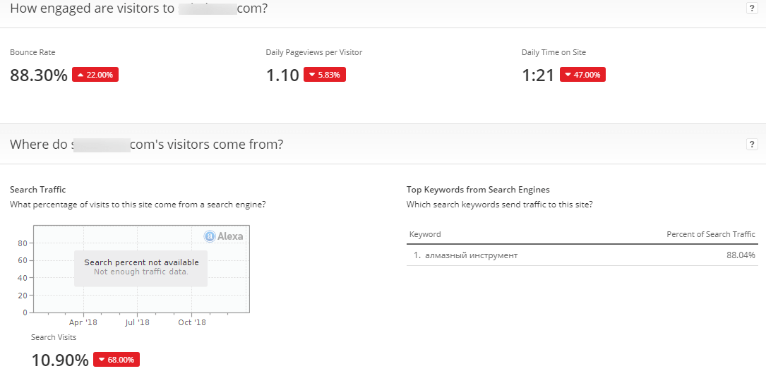 Этот сервис больше для англоязычной аудитории, но нам тоже может быть полезен. Он поможет определить посещаемость — чем меньше Alexa Rank, тем более трастовый сайт перед вами. Также с его помощью можно определить наиболее популярные сайты в регионе или стране.