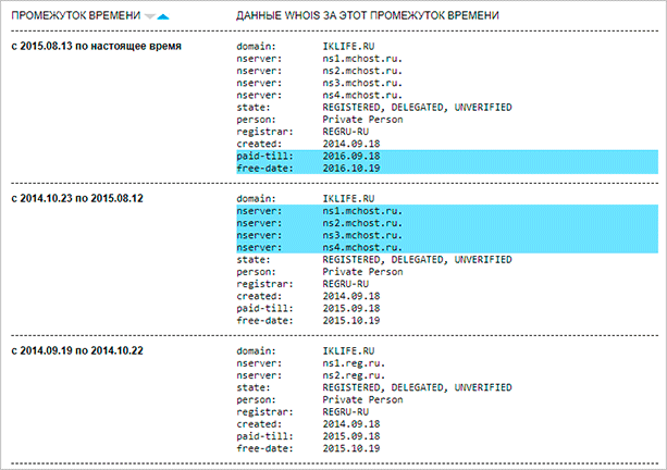Достаточно просто перейти на проект сервиса, ввести нужный адрес и получить подробную информацию о последней дате регистрации, NS-серверах (позволит определить хостинг) и в некоторых случаях Ф. И. О. владельца. Иногда данные скрываются, однако именно число последней регистрации скрыть нельзя.
