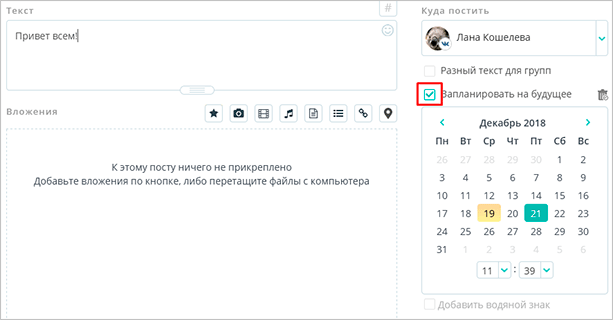 - публиковать сообщения на стене в удобное для вас время так, чтобы их увидели как можно больше людей в назначенный час;
