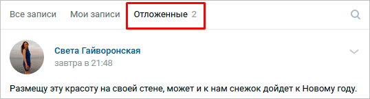 Над стеной появляется дополнительная вкладка. Заходите туда и смотрите все запланированные сообщения.