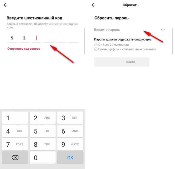 Приходит шестизначный код, вводим его в форме. Придумываем новый пароль. От 8 до 12 символов с буквами, цифрами и символами. Нажимаем «Войти».