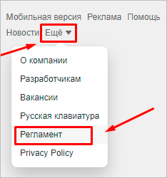 Зайдите в свой аккаунт в Одноклассниках и пролистайте страницу вниз. Под основным меню вы увидите пункт “Еще”. Наведите на него курсор мыши. Появится выпадающий список, из которого нужно выбрать раздел “Регламент”.