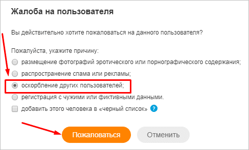 В Одноклассниках есть возможность не просто ограничить определенному человеку доступ к вашей страничке, при определенных условиях вы можете на некоторое время или навсегда заморозить страничку другого пользователя. Это возможно только в том случае, если он нарушил одно из правил, о которых мы уже упоминали выше.