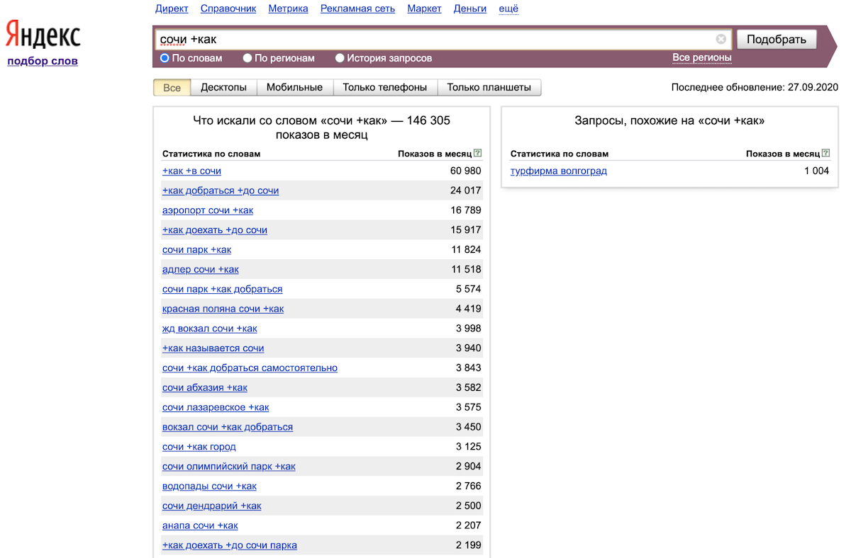 Но показатель частотности входных слов напрямую влияет на объём. Чем больше частотность входной фразы, тем больше её используют в различных поисковых запросах. Поэтому при анализе также ориентируйтесь на частотность.