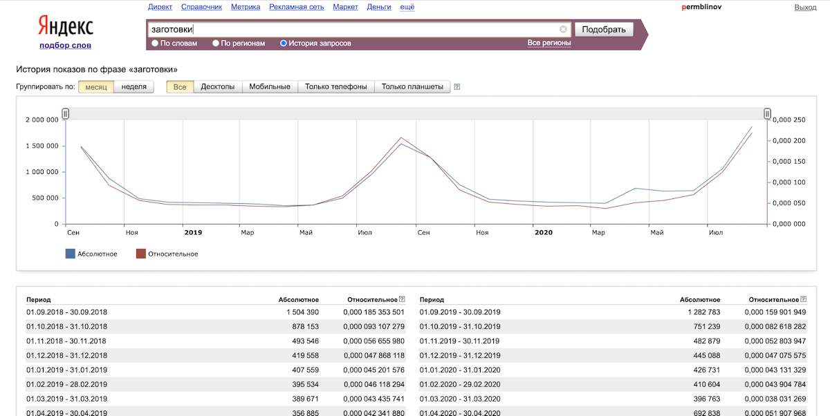 Минимальное значение, которое мы рекомендуем брать для входного слова – от 100 000 показов в месяц.