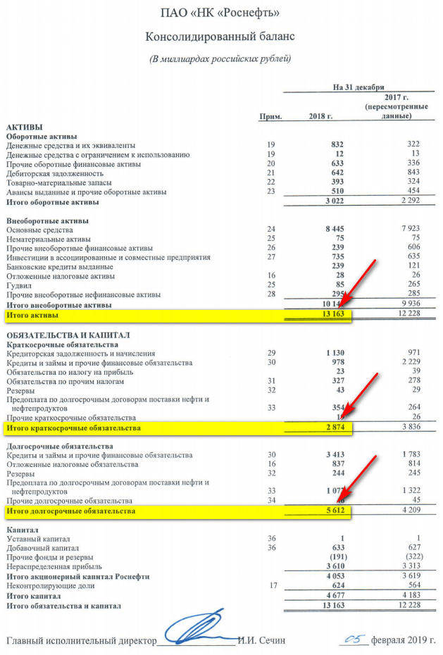 Рассмотрим на примере годовой отчетности компании Роснефть за 2018 год, как рассчитать коэффициент левериджа. Ищем консолидированный отчет (по МСФО) на официальном сайте, в разделе “Инвесторам и акционерам”: