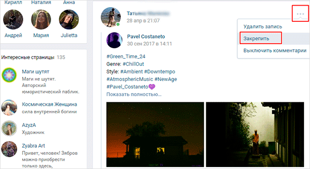 Таким образом, самый важный и актуальный пост будет всегда на виду для ваших друзей и подписчиков.