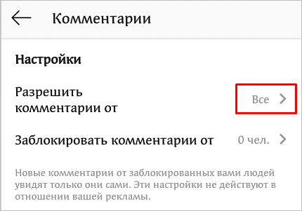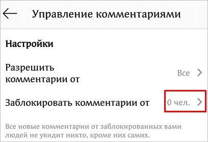- Запретить комментирование отдельным людям.