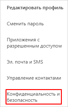 В меню слева выбираем “Конфиденциальность и безопасность”.