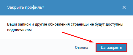 В ответ на попытку сделать профиль закрытым вы получите сообщение о том, что ограничения коснутся и подписчиков. Подтвердите ваши намерения нажатием кнопки.