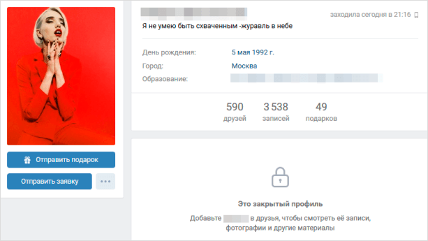 Как посмотреть закрытый профиль