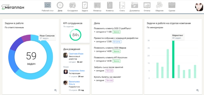 2. Проекты и задачи. Осуществляет контроль за выполнением задач, позволяет оценивать нагрузку сотрудников, следить за соблюдением дедлайнов, вести отчетную документацию о ходе проектов.