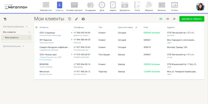 1. Работа с клиентами. Позволяет хранить информацию о клиентах, создавать группы пользователей по предпочтения и работать с каждой из них отдельно, принимать и быстро обрабатывать заказы, выстраивать коммуникацию с потребителями, высылать автоматические сообщения, совершать звонки.