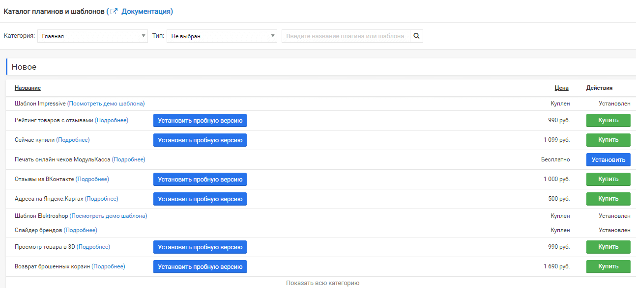 - Работа с покупателями. Сделать интернет-магазин успешным помогут плагины с опросами, отзывами покупателей, модули «Узнать статус заказа» и «Купить в один клик».
