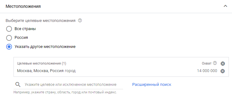 В настройках кампании указываем целевое местоположение: