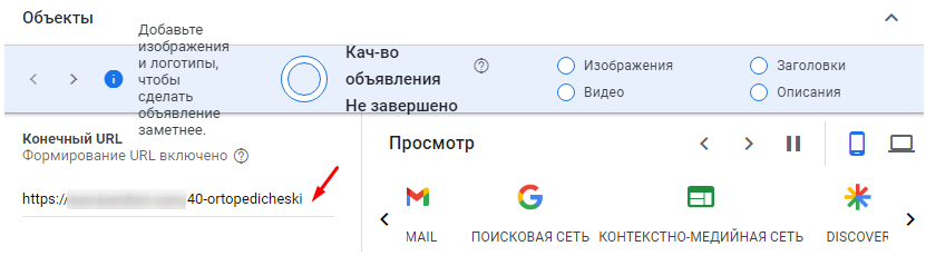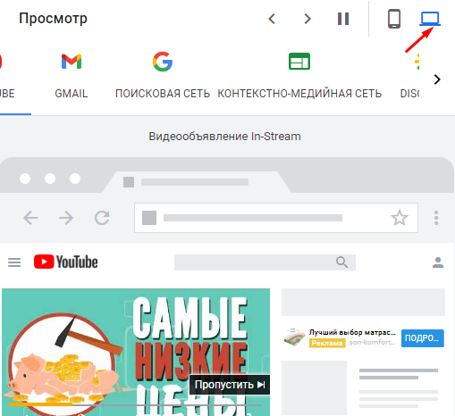 После добавления всех элементов можно посмотреть, как будет выглядеть ваше объявления на разных плейсментах на десктопных и мобильных устройствах:
