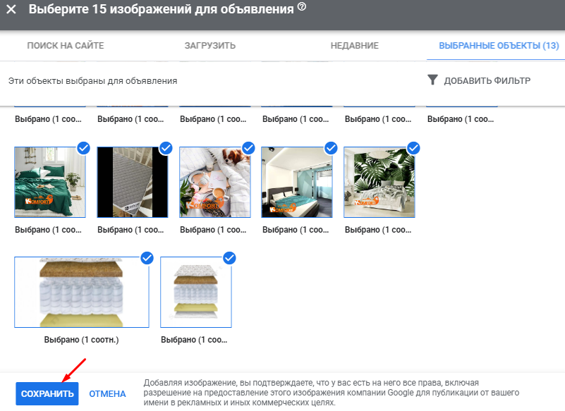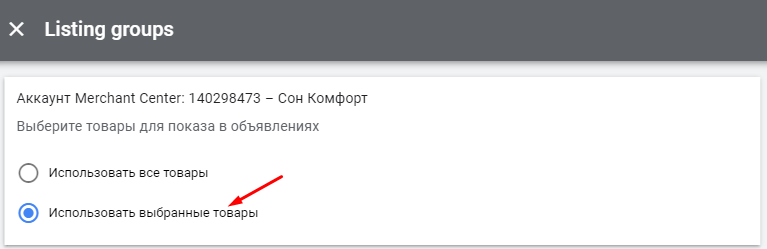Выбираем товары, которые хотим показывать в рекламе: