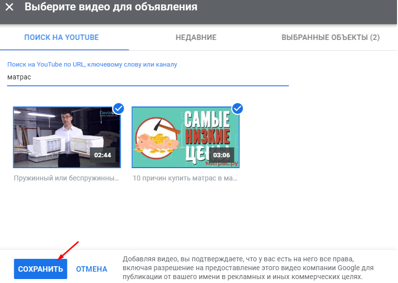 5. Загружаем видео. Ограничение – до 5 видео. Если у рекламодателя нет видеороликов, то система может создавать их самостоятельно из контента вашего сайта, если это увеличит вероятность совершения конверсионного действия и того будет требовать плейсмент.