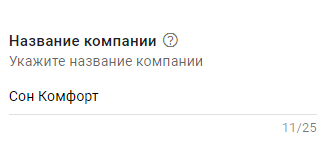 10. Указываем название компании. Ограничение – не более 25 символов.