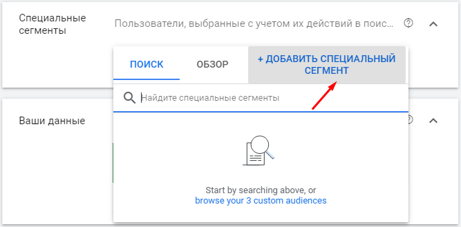 Новый специальный сегмент можно настроить по интересам и пользовательским намерениям или по вводимым ранее запросам пользователей.