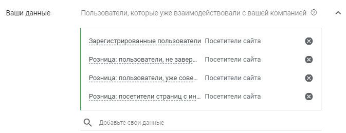 3. Добавляем собственные данные о пользователях, которые уже взаимодействовали с аудиторией: