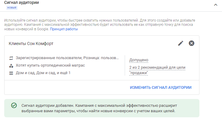 4. Настройте сигналы аудитории. Система получит больше информации о вашей ЦА и сможет показывать ей объявления на разных рекламных каналах.