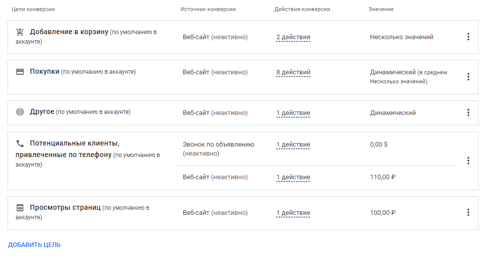 1. Используйте в кампании все важные для вас цели.