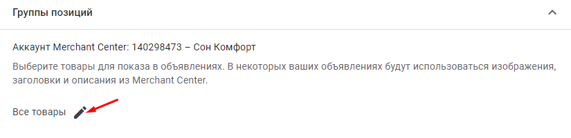 Для этого нажимаем на знак ручки в разделе «Группы позиций»: