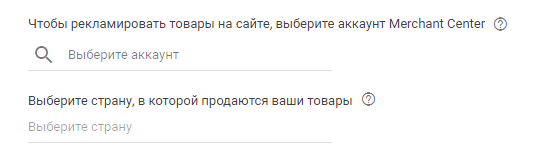 Для рекламирования товаров на сайте выбираем аккаунт Merchant Center.