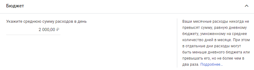 Система может в одни дни тратить большую сумму денег, а в другие – меньшую. Такое происходит в том случае, если алгоритм считает, что более высокая ставка на аукционе приведет к выполнению действия-конверсии на сайте. При этом максимальный перерасход дневного бюджета не может превышать указанной суммы в два раза.