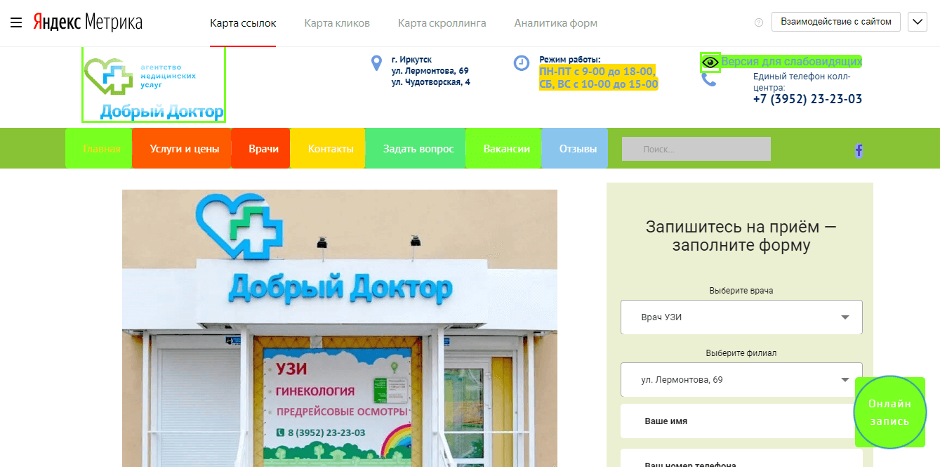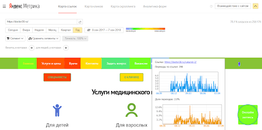 Карты скроллинга, кликов и ссылок от Яндекс.Метрики помогут сделать сайт удобнее для пользователей. Учитывая данные статистики, вы доработаете элементы, которые должны конвертировать лидов в продажи, разместите наиболее значимый контент в зоны максимальной концентрации внимания посетителей.