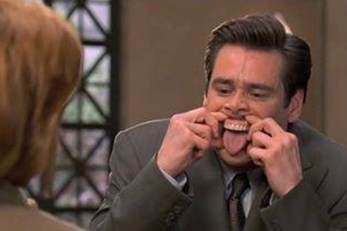 - Кривляка. Опустите нижнюю челюсть к груди, язык высуньте к подбородку.