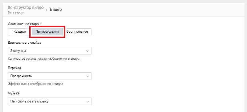 Шаг 3. Соотношение сторон. На вновь открывшейся странице, нам нужно определиться с тем, какого формата будет наше видео. Возможны три варианта:
