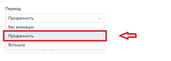 Шаг 5. Переход. Здесь настраиваем то, какой эффект будет применяться при смене слайдов на экране. Можно выбрать: