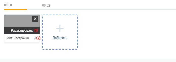 Появится плашка, где есть два уровня редактирования: содержание слайда (1) и то как он будет показываться (2).