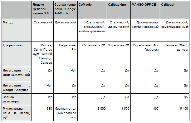 В таблице указаны минимальные цены, достаточные для подключения каждого из колл-трекеров. Ровно столько вам понадобится, чтобы начать работать с ними. Стоимость обслуживания в будущем может увеличиться: в зависимости от трафика, количества используемых телефонных номеров и т.п.