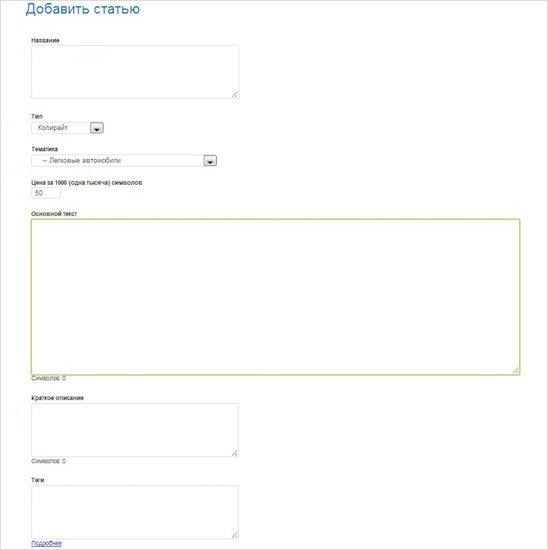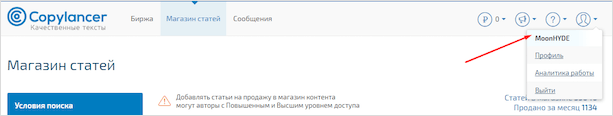 Выбираете “Добавить статью”. Материал для продажи можно также сохранять в разделе “Мои тексты”.