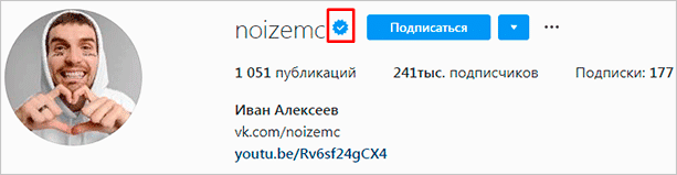 Чаще всего такой значок можно встретить на странице звезд и других известных личностей.