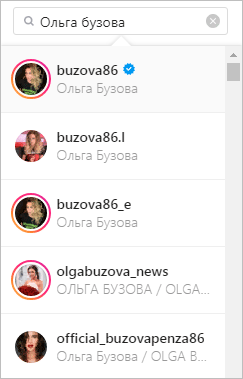 Эта синяя галочка означает, что администрация Инстаграма получила от человека копии документов и подтвердила его личность. Основная цель этого символа – избежать обмана со стороны мошенников, которые могут выдавать себя за известного человека. Посмотрите на скриншоте, сколько есть фейковых страниц по запросу “Ольга бузова”.