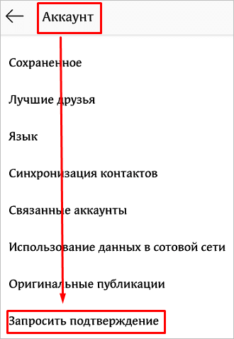 Находим раздел “Аккаунт”, подраздел “Запросить подтверждение”.