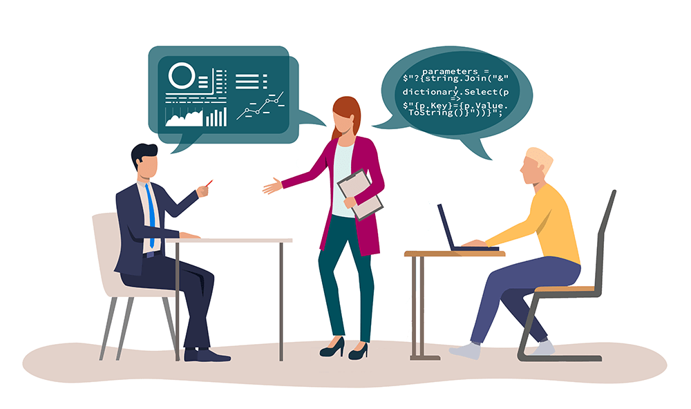 Как и у бизнеса, у программ есть свои задачи. Точнее, они есть у пользователя, а программа должна их решать самым удобным и быстрым способом. Аналитик данных является связующим звеном между разработчиками и заказчиками или разработчиками и руководителями предприятия. Такой специалист умеет переводить данные с технического языка на интересные бизнесу показатели: продажи, прибыль, расходы. Также он помогает решать задачи компаний при помощи улучшений программного обеспечения.