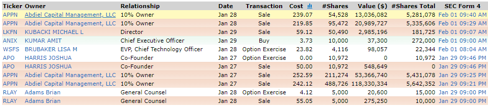 Например, агрегатор finviz.com собирает в одном месте все отчеты по форме 4, которую требует заполнить SEC американским инсайдерам.