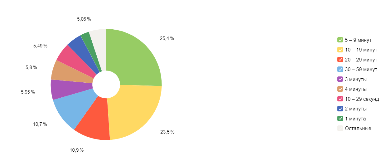 А если у ресурса посещаемость хорошая, можно брать время от 5 минут. Или поэкспериментировать и выделить диапазоны 1-5 минут, 5-9 минут и т. д.