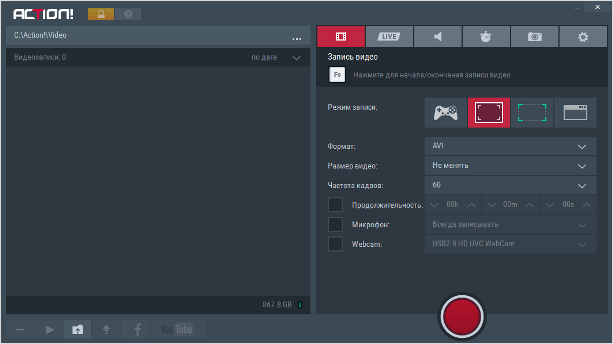- Видео не имеет ограничений (записывайте, пока не кончится место на ноутбуке).