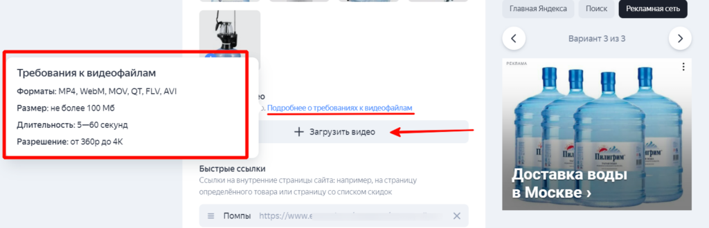 Кроме того, для РСЯ можно добавить короткий рекламный видеоролик.